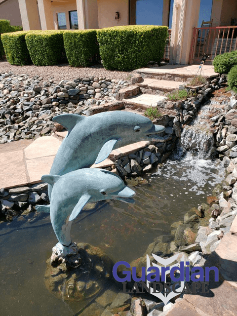 Guardian Landscape refurbished this pond that wasn’t even being used by cleaning, adding an auto-fill kit and algaecide. We even moved the bronze Dolphins statue into the pond to make it WOW in time for the home going on the market for sale. Below are the before and after photos.